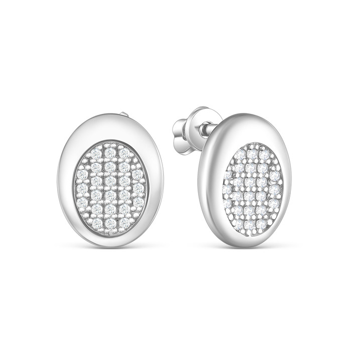 Серьги-пусеты из серебра с фианитами родированные 925 пробы 12-0927