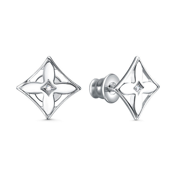 Совместные покупки Курган Ювелирные украшения и бижутерия Серьги — Серьги-пусеты из серебра с фианитами родированные - Клевер 925 пробы 221-10-052р
