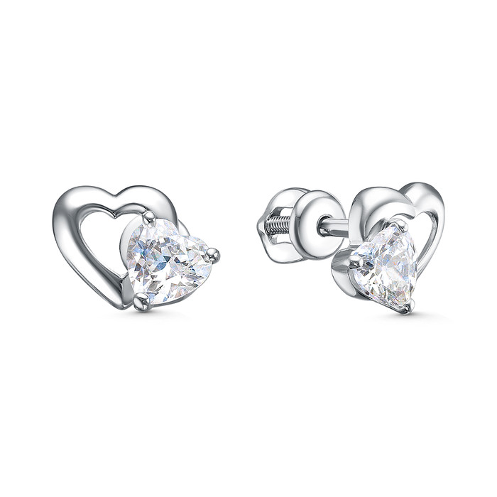 Совместные покупки Курган Ювелирные украшения и бижутерия Серьги — Серьги-пусеты из серебра с фианитами родированные - Сердца 925 пробы С-4755-Р