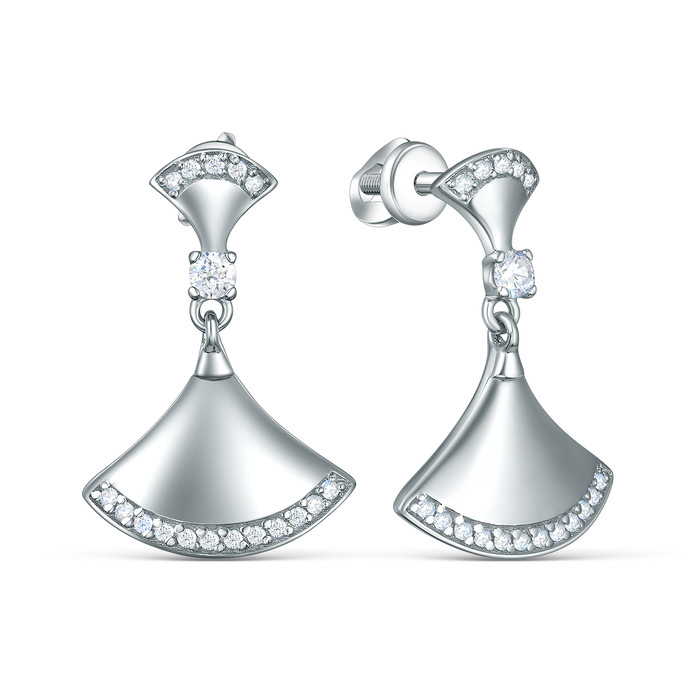 Совместные покупки Курган Ювелирные украшения и бижутерия Серьги — Серьги-пусеты из серебра с фианитами родированные - Вееры С-4726-Р