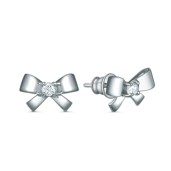 Совместные покупки Курган Ювелирные украшения и бижутерия Серьги — Серьги-пусеты из серебра с фианитом родированные - Банты 221-10-256-1р