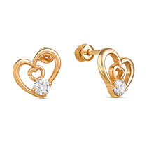 Серьги-пусеты из серебра с красным рубином и золочением родированные