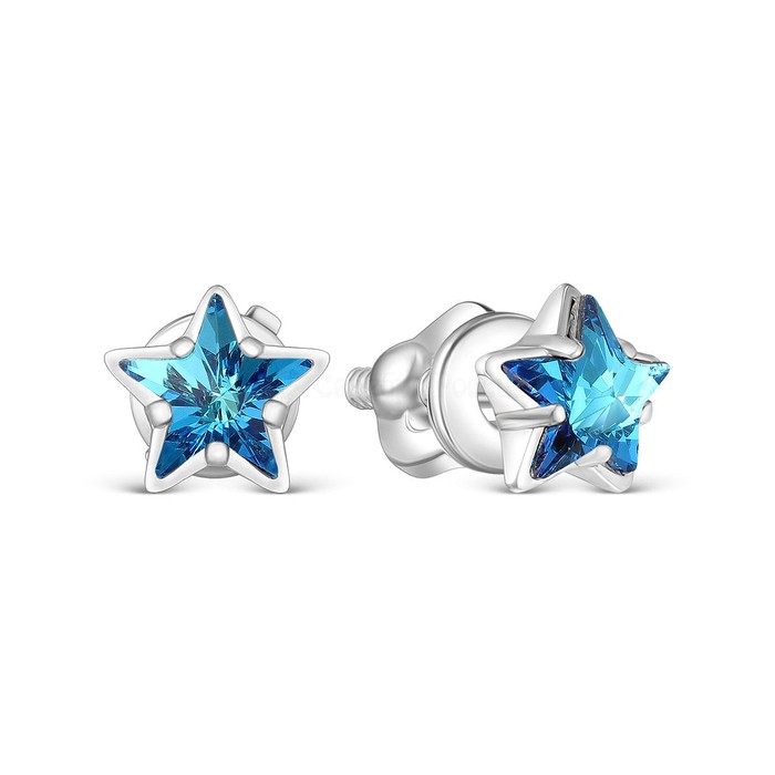 Серьги-пусеты из серебра с кристаллами премиум Австрия цв.Бермудский синий родир