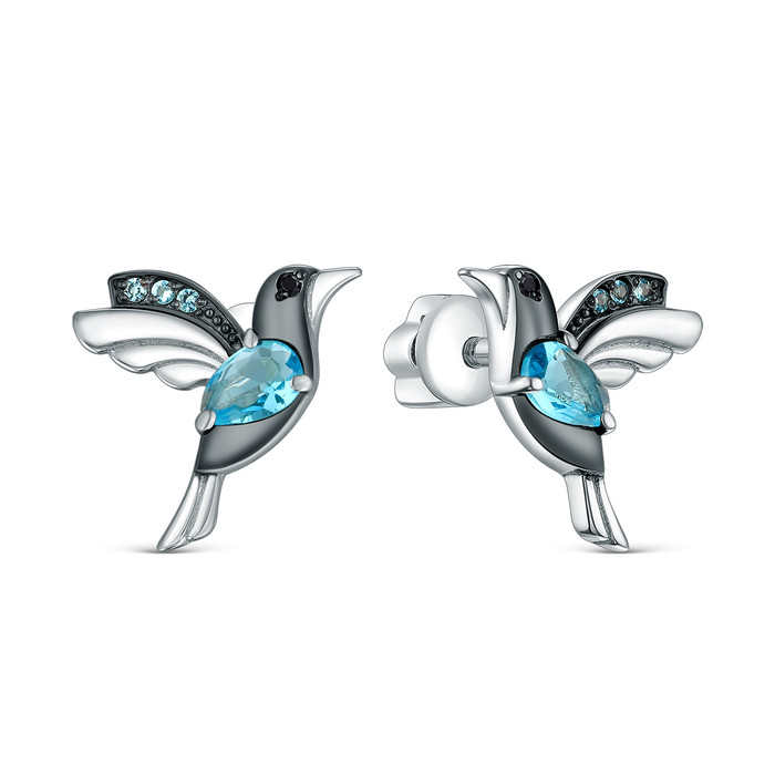 Совместные покупки Курган Ювелирные украшения и бижутерия Серьги — Серьги-пусеты из серебра с плавленым кварцем цвета топаз, плавленым кварцем чёрн