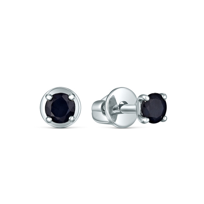 Серьги-пусеты из серебра с сапфиром родированные 04-202-0239-41
