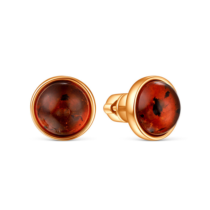 Серьги-пусеты из золочёного серебра с коньячым янтарём 05-802-0172-12