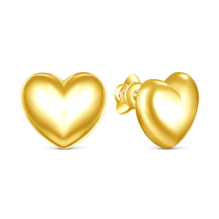 Серьги-пусеты из золочёного серебра - Сердца С-7515лз
