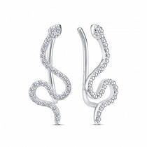 Серьги из серебра с натуральным хризолитом и фианитами родированные Са-080р406