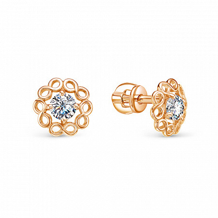 Серьги с фианитом позолоченные серебро 925*