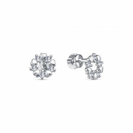 Серьги с фианитом родированные серебро 925*