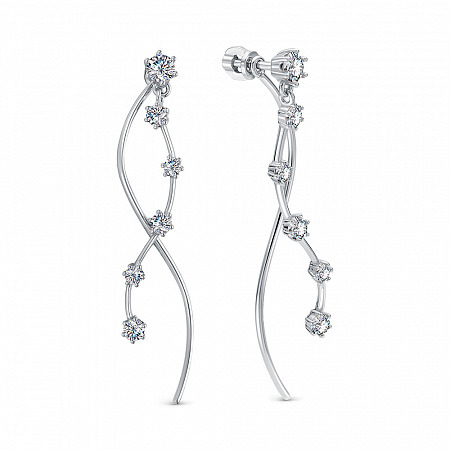 Серьги с фианитом родированные серебро 925*