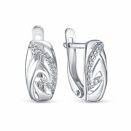 Серьги с фианитом родированные серебро 925*