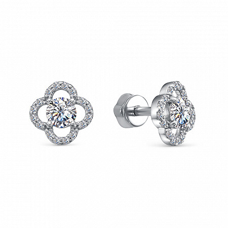 Серьги с фианитом родированные серебро 925*