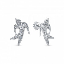 Серьги-пусеты из серебра с фианитами родированные 925 пробы 12-0462р