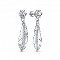 Серьги с фианитом родированные серебро 925*