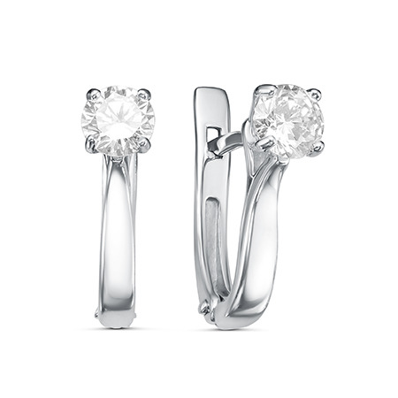 Серьги с фианитом родированные серебро 925*