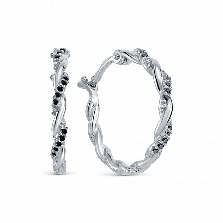 Серьги с фианитом родированные серебро 925*