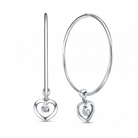 Серьги с фианитом родированные серебро 925*