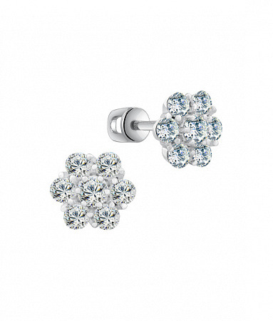 Серьги с фианитом родированные серебро 925*