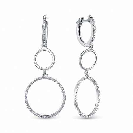 Серьги с фианитом родированные серебро 925*