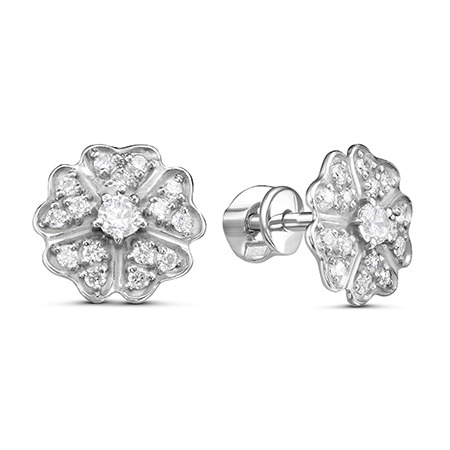 Серьги с фианитом родированные серебро 925*