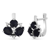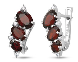 Серьги из серебра с натуральным гранатом и фианитами родированные 925 пробы 2-44