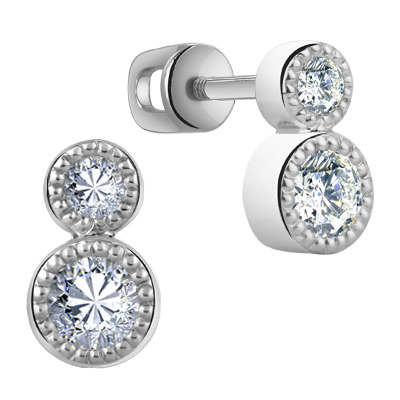 Серьги с фианитом родированные серебро 925*
