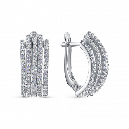 Серьги с фианитом родированные серебро 925*