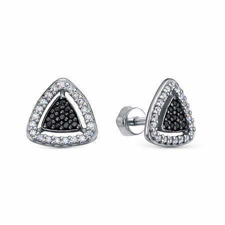 Серьги с фианитом родированные серебро 925*