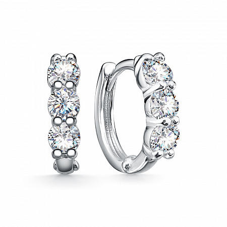 Серьги с фианитом родированные серебро 925*