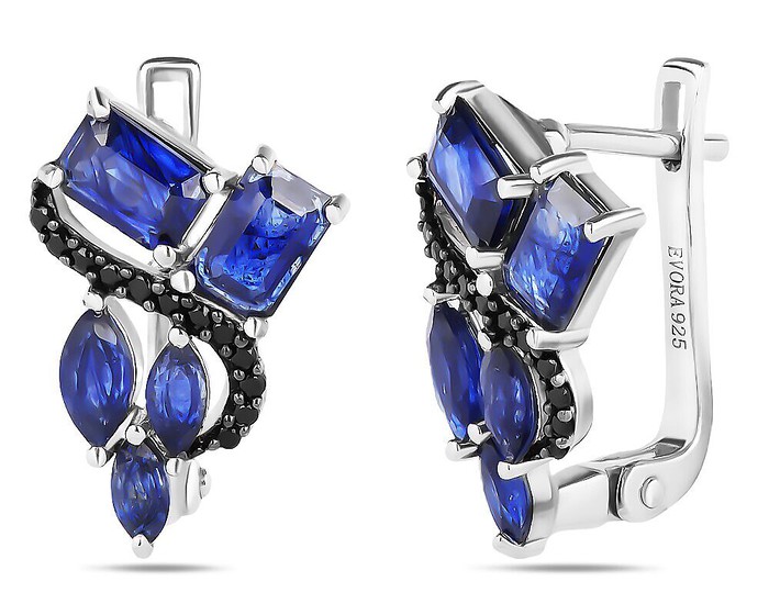 Серьги, арт.658613 Серебро Серебро 925, 4,87 гр., сапфир корунд , шпинель