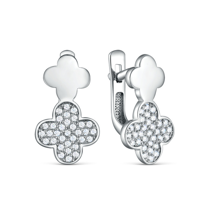 Совместные покупки Курган Ювелирные украшения и бижутерия Серьги — Серьги в форме клевера из серебра с фианитами родированные 925 пробы 04-302-0262