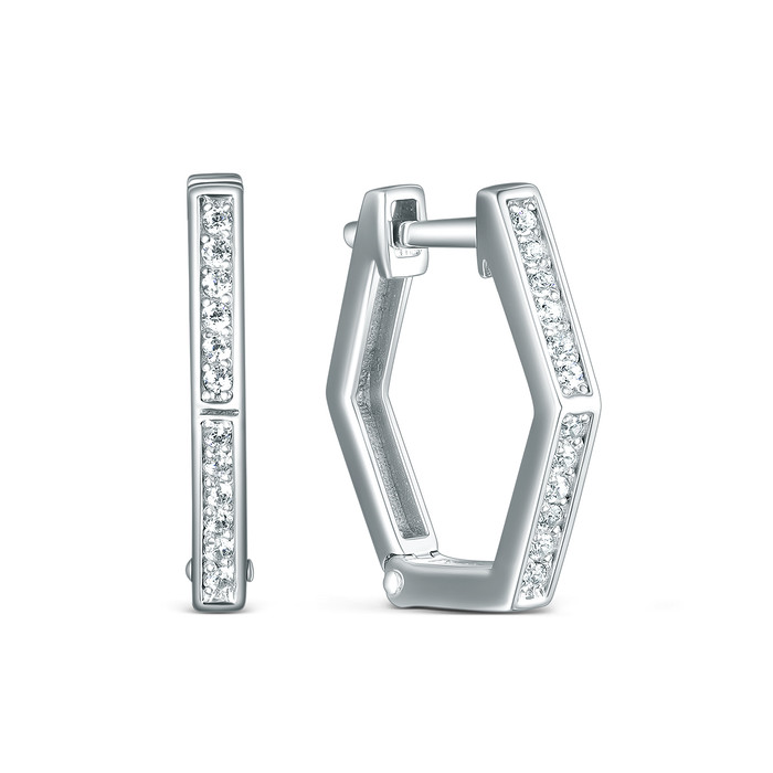 Серьги восьмиугольники из серебра с фианитами родированные 925 пробы 2-016р200