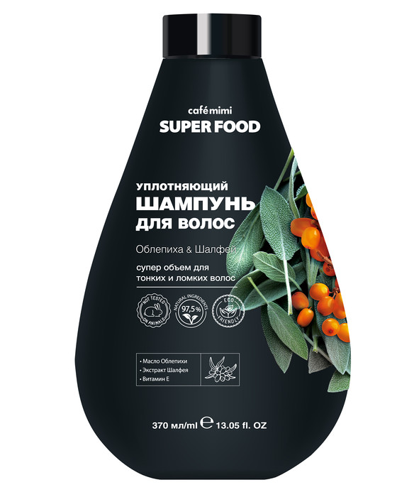 Шампунь SUPER FOOD бережно очищает волосы, органические масла и экстракты, входящие в состав шампуней, насыщают их витаминами и полезными микроэлементами, восстанавливают и укрепляют структуру волос, придают сияние и естественный блеск. Волосы плотные и густые без утяжеления. Супер объем и блеск. Активизация роста волос. Для усиления эффекта используй вместе с бальзамом и маской из серии CAFE MIMI SUPER FOOD.