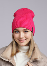 Стильная двойная шапка с отворотом в нежных пастельных цветах, без подклада, декорирована стильной нашивкой. Станет не только отличной защитой от холода, но и модным аксессуаром.