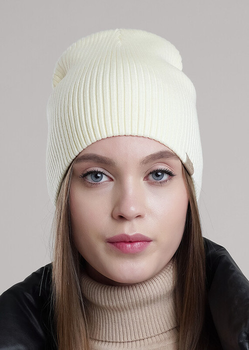 Базовая двойная шапка без отворота, выполнена ластичным переплетением. Декорирована стильной нашивкой. Идальна для холодной осени, тёплой зимы.
