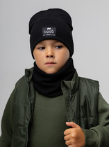 Очень теплая зимняя шапочка для мальчиков с отворотом. Верхний слой связан из мягкой акриловой пряжи, нижний слой (подклад) шапки и снуда выкроен из хлопкового полотна и полностью пришит. Внутри утеплитель изософт. На макушке небольшой помпон. Сбоку - фирменный лейбл.