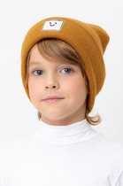 Двойная шапочка для мальчиков с забавными острыми ушками с петельками на концах. Верхний слой связан из полушерстяной мериносовой пряжи, подклад выкроен из хлопкового полотна и полностью пришит, утеплитель - изософт. Спереди - фирменный лейбл. Аккуратные завязки без узлов и наконечников.