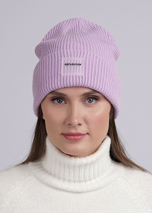 Шапка двойная женская с отворотом, декорирована стильной нашивкой логотип. Отлично подойдёт для зимы.