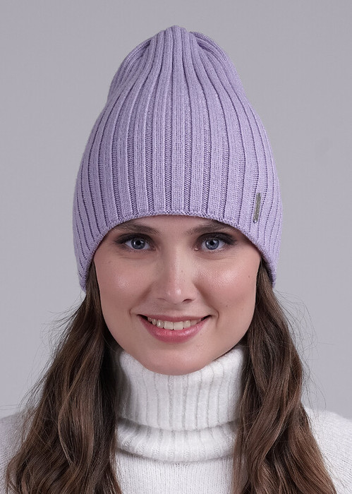Женская двойная шапка, декорирована нашивкой логотип. Подойдёт для холодной осени- тёплой зимы.