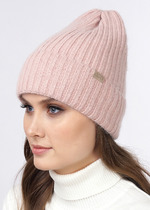 Женская шапка с отворотом, декорирована стильной нашивкой логотип. Утепление по всей голове флисом. Подойдёт для холодной зимы.