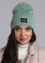 Шапка двойная женская, декорирована стильной нашивкой логотип. У данной модели 2 варианта посадки- с отворотом и без отворота. Идеально для холодной осени- тёплой зимы.