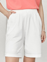 Шорты женские из гладкокрашеного трикотажного полотна «футер-двунитка», удлиненные и расширенные, на притачном поясе с эластичной тесьмой внутри и карманами в боковых швах. Передние половины шорт застрочены по центральным линиям.