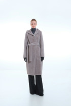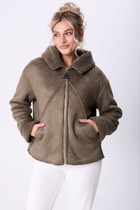 Куртка из искусственного меха прямого силуэта со спущенной линией плеча. Рукав втачной одношовнный внизу со складками. Полочка с центральной застежкой на крючки. Куртка без карманов. Полочка и спинка внизу со складками. По горловине воротник-стойка с застежкой на крючок. Куртка на подкладке.