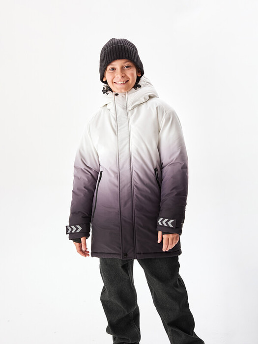 Зимняя куртка прямого кроя для мальчиков с водонепроницаемым покрытием на молнии в градиентной расцветке и с трендовой нашивкой на левом рукаве. Утеплитель пластовой синтепон пластовой к основн ткани - 50  гр/м2,  биопух к подкладке- 250 гр/м2, мембрана. Манжет рукава с прочной внешней поверхностью и мягким внутренним слоем с велюровым ворсом. Температурный режим до минус 30 градусов. Карманы на молниях обеспечивают удобство для хранения мелочей. Надежная фурнитура: прочные застежки и молнии, которые обеспечивают долгий срок службы.  Застежка - намолнию закрыта ветрозащитной планкой на кнопках. Воротник - стойка, переходящая в капюшон. Доступна в 2 цветах.