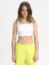 Удобный базовый облегающий топ для девочки, укороченный, с широкими лямками. Выполнен из эластичного трикотажного полотна.