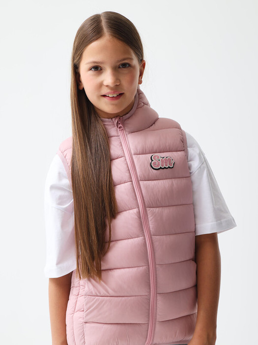 Демисезонный двусторонний стеганый жилет с утеплителем из синтепона, выполненным из экологичных и переработанных материалов. Прямой крой, капюшон и воротник-стойка, застежка-молния. Прорезные карманы на молнии, внутри - флис. На груди фирменный патч «Sm». Размерный ряд 128 – 176 см.