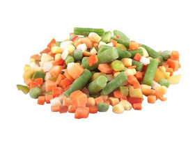 Смесь по-деревенски продается упаковками вес каждой от 0,9 до 1,1 кг. Включает в себя картофель, брокколи, фасоль, перец, лук, морковь, шампиньоны.