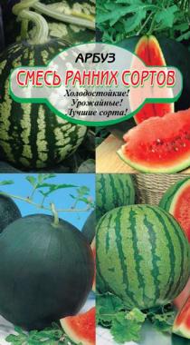 Смесь ранних (от всходов до созревания плодов 75-95 дней) сортов. Растения коротко - и длинноплетистые. Плоды округлые, гладкие, массой 2-3 кг, разных цветов и окраски: тёмно-зелёные, зеленые с черными полосами, светло-зелёные с мраморным рисунком, толсто- и тонкокорые. С красной, розово-красной и розово-малиновой мякотью. Урожайность с растения 6-9 кг. Ценность сорта смеси: устойчивость к комплексу заболеваний, раннеспелость, разнообразие формы и вкуса. Рекомендуется для употребления в свежем виде.