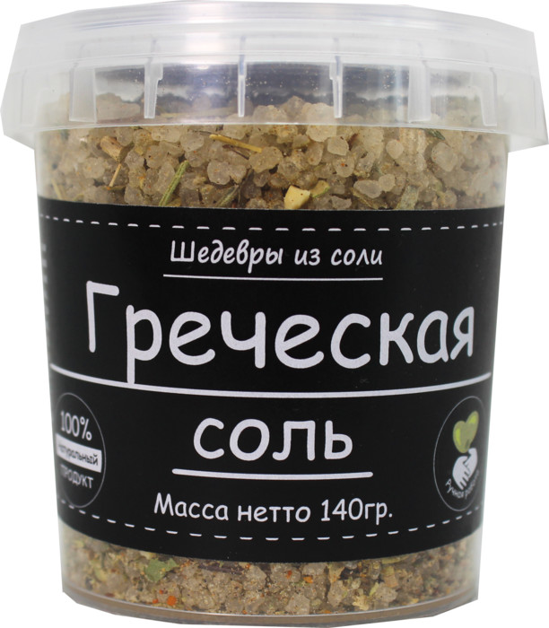 Состав: морская соль, свежие оливки, каперсы, майоран, орегано,тимьян, базилик. черный перец, розмарин, красный острый перец, сублимированный сыр Фета.